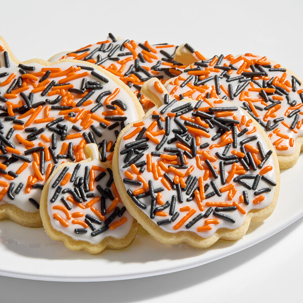 Sprinkles offer a great way to add taste, texture, and enhance the appearance of your sweet treats. These black and orange sprinkles make it easy to put a signature finishing touch on a variety of baked goods, desserts, and beverages. Incredibly fresh, great tasting, and coming at a great value, these sprinkles offer the perfect solution to anyone looking to bring seasonal flair to their holiday treats!
