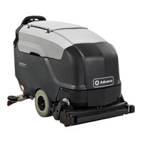 Efficiently clean and polish floors with this Advance SC901 34D floor scrubber. This innovative floor scrubber features a disc scrub deck with a 34" cleaning path, allowing you to scrub an impressive 34,034 sq. ft. per hour. It boasts a powerful 710W vacuum motor with a 71" waterlift and 250 RPM brush speed. The MidLite Grit brushes will help you tackle even the toughest cleaning tasks. The generous 30 gallon solution tank and 32 gallon recovery tank allow you to clean large areas with less dumping and refills. Simple, intuitive controls are fully integrated into the steering wheel, making it easy for any employee to safely operate. A paddle on the steering wheel allows for forward and reverse movement, and a regulated cruise control option is available for safe, reliable operation. The 1/2 hp drive motor offers speed operation up to 3.2 MPH.