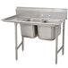 This Advance Tabco 9-2-36-36 Super Saver two compartment pot sink features one 36" drainboard, providing ample space to tackle any warewashing task in your commercial kitchen. Made of 18 gauge 304 series stainless steel, the Advance Tabco 9-2-36-36 Super Saver two compartment pot sink with one drainboard is both durable and affordably priced.