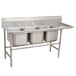 With its 24" drainboard, this Advance Tabco 94-23-60-24 Spec Line three compartment pot sink allows you to complete the entire dishwashing process--washing, rinsing, and sanitizing--within the same unit! The Advance Tabco Regaline 94-23-60-24 Spec Line pot sink with one drainboard is made of rugged, 14 gauge 304 series stainless steel to stand up to the harshest abuse in the busiest commercial kitchens.