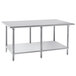 With This 16 Gauge Advanced Tabco Stainless steel Work Table with Galvanized Undershelf,You can prep on top and use the bottom for storage.Easy to clean.