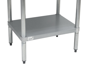 With This 16 Gauge Advanced Tabco Stainless steel Work Table with Galvanized Undershelf,You can prep on top and use the bottom for storage.Easy to clean.