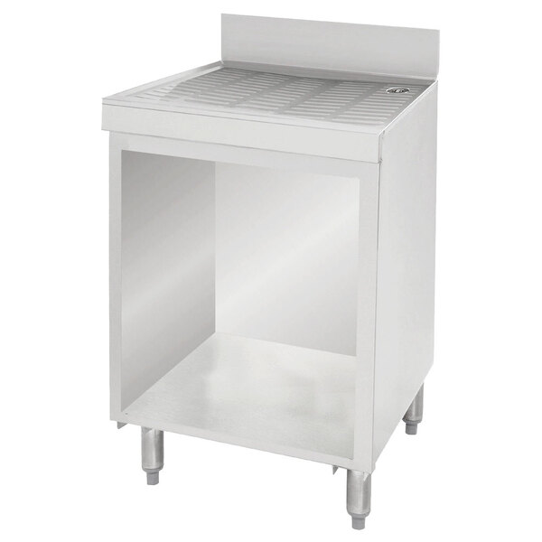 Make the most out of the limited space in your operation with this innovative Advance Tabco CRD-4B stainless steel drainboard storage cabinet. An embossed and seamless drainboard is fitted with a 1" IPS drain in the back right along with a 3" diameter hole in the back panel for plumbing access. A 4" backsplash works to protect nearby walls and furniture, while a rear deck provides extra storage.