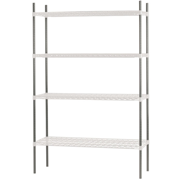 This particular post ships without a foot, which enables it to connect to a caster (sold separately). The caster provides mobility to make the shelving unit easy to move aside for cleaning or for better access and product retrieval.