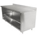 This 36" x 84" Advance Tabco EK-SS-367M open front cabinet base work table blends a heavy-duty work surface with storage space that's enclosed on three sides to keep mixing bowls, containers, prep supplies or even small kitchen appliances close at hand! A fixed midshelf is included to promote even more storage flexibility.