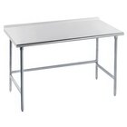 To ensure maximum stability, each quality, stainless steel work table offers 1 5/8" diameter tubular galvanized steel legs with 1" adjustable plastic bullet feet. This Advance Tabco work table's top is able to support up to 325 lb. of uniformly distributed weight.