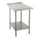 Advance Tabco FMG-300 30" x 30" 16 Gauge Stainless Steel Commercial Work Table with Undershelf and 1 1/2" Backsplash