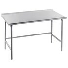 To ensure utmost stability, each stainless steel work table offers 1 5/8" diameter tubular stainless steel legs with matching 1" adjustable stainless steel bullet feet. This Advance Tabco work table's top is able to support up to 504 lb. of uniformly distributed weight.