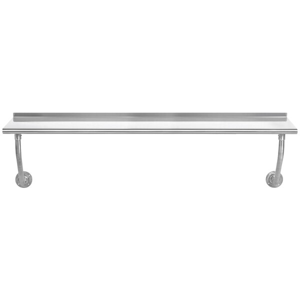 This Advance Tabco FSS-W-307 stainless steel 30" x 84" wall mounted table is a perfect way to increase your usable workspace, while providing more stability and taking up less room than a conventional worktable! Built to withstand heavy use, this unit features a sound deadened 14 gauge type 304 stainless steel top with sanitary rolled rim edges and rounded "bullnose corners", while a 1 1/2" backsplash helps protect your walls from dirt and debris. It installs by mounting the top to a steel-dart design angle (secured to the wall), and mounting the 1 5/8" tubular wall brackets into a steel, wall mounted embossed flange to provide additional support.
