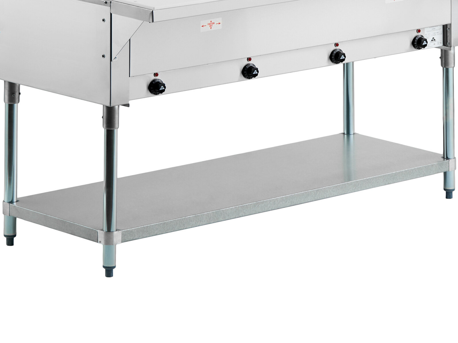 The durable undershelf on this unit is great for storing extra serving utensils, food pans, and lids, keeping everything you need close at hand. It's easy to assemble and can be adjusted as needed.