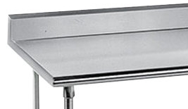 The 30" x 48" sound-deadened top shelf is made from 16-gauge, type 430 stainless steel and supports approximately 400 lb. of evenly distributed weight. It features an easy-to-clean rolled front, and the sides of the table are squared off for flush placement against walls or other tables. To support the weight on top and maintain a level work surface, this work table is engineered with two reinforcing hat channels. Additionally, this table has a 5" backsplash to protect your walls from water, grease, and food debris.