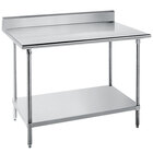 Advance Tabco KLG-245 24" x 60" 14 Gauge Work Table with Galvanized Undershelf and 5" Backsplash