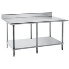 Advance Tabco KLG-3610 36" x 120" 14 Gauge Work Table with Galvanized Undershelf and 5" Backsplash