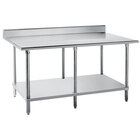 Each stainless steel work table is designed with a 1 5/8" sanitary rolled front edge with square sides and a 5" backsplash with a 1" return on the rear side.