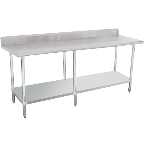 Advance Tabco KMSLAG-248-X 24" x 96" 16 Gauge Stainless Steel Work Table with Undershelf and Backsplash