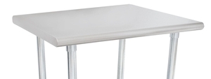 This 16-gauge worktable is a durable option for your commercial food prep area, featuring a type 304 stainless steel construction for exceptional corrosion resistance! It's perfect for completing all kinds of daily tasks including chopping up vegetables, pressing hamburger patties, and boxing up baked goods.
