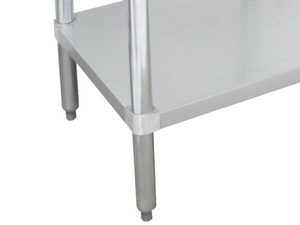 For added versatility, this work table boasts an adjustable 18-gauge galvanized steel undershelf that gives you an excellent place to store additional products like cutting boards, bowls, pans, and other go-to supplies for quick and convenient accessibility. It's also a great place to store light prep equipment when not in use!