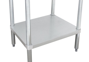 The gauge refers to the thickness of the stainless steel used to make this work table. The lower the gauge number, the thicker the material. Low gauge stainless steel work tables are ideal for heavy-duty food preparation applications where your unit must withstand repeated heavy blows, while higher gauge tables offer a budget-friendly option for light-duty everyday tasks. Learn more about which gauge is right for your establishment in our Commercial Kitchen Work Table Guide.