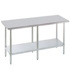 With This 16 Gauge Advanced Tabco Stainless steel Work Table with Galvanized Undershelf,You can prep on top and use the bottom for storage.Easy to clean.