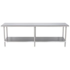 This 16-gauge work table boasts a type 304 stainless steel construction that gives you added protection against corrosion in the food prep area of your commercial kitchen! Perfect for tasks like dicing vegetables and icing cupcakes, this table offers a great multi-purpose work space.