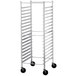This mobile side load bun pan rack can hold up to 18 full size pans with 3" spacing between shelves and has a total capacity of 500 lb. This unit ships knocked down.
