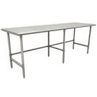 This 36" x 120" stainless steel work table offers a convenient, adjustable 18 gauge stainless steel undershelf, held securely in place by die cast leg clamps. For further stability, each table includes 1 5/8" diameter tubular stainless steel legs, each with a 1" adjustable stainless steel bullet foot. It can support up to 750 lb. of evenly distributed weight.
