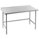 This Advance Tabco work table's top is able to support up to 420 lb. of uniformly distributed weight.