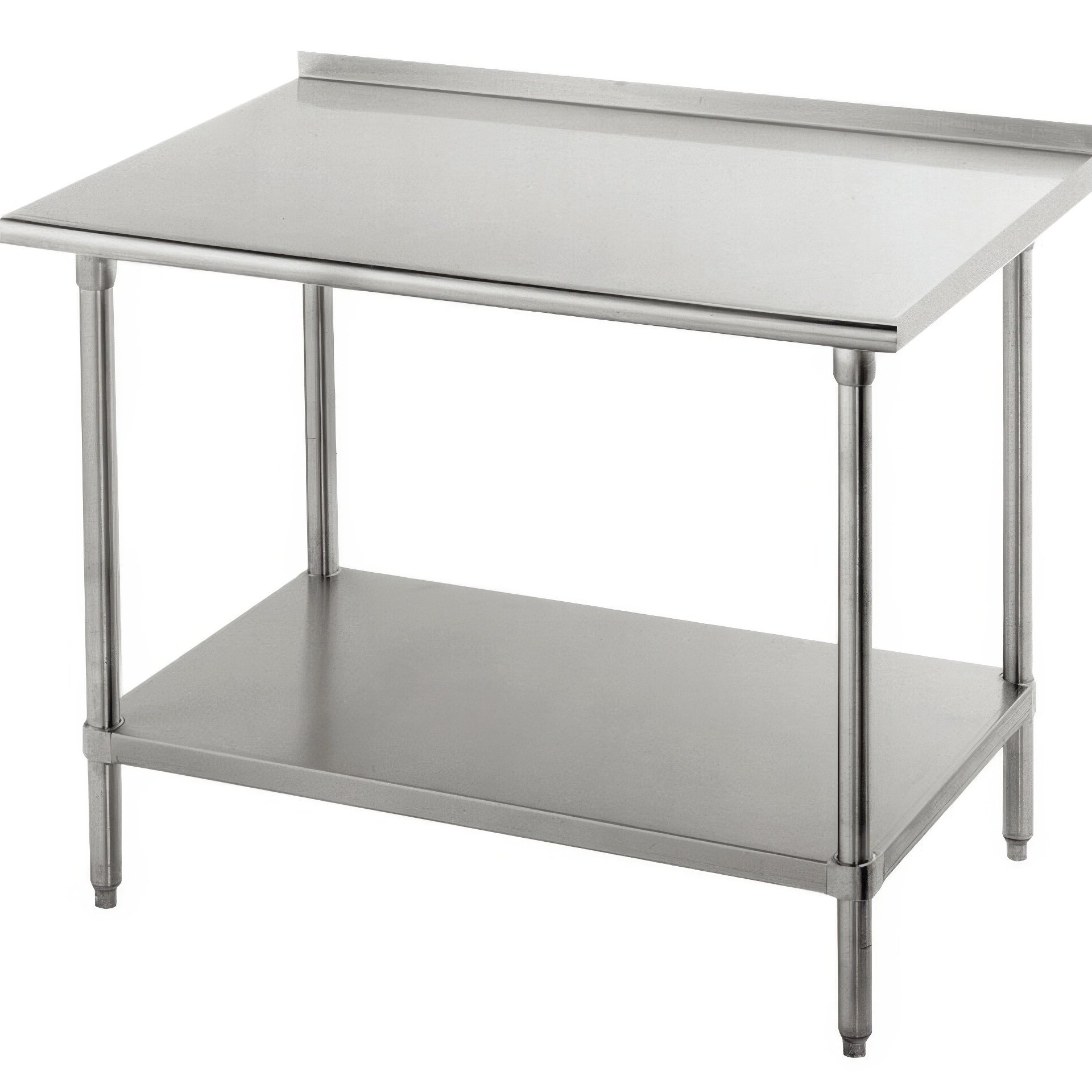 With a 1 1/2" backsplash, this work table will help to protect your wall from splatters and spills and keep tools and ingredients from rolling off the back of the table.