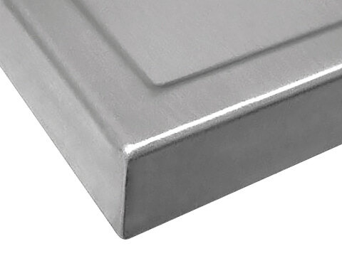 This work table features an easy-to-clean rolled front. To provide efficiency and versatility, the sides of the table are squared off for flush placement against walls or other tables.