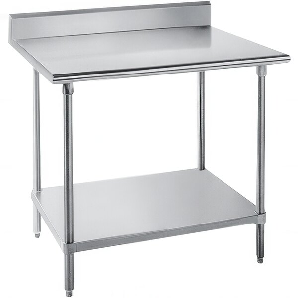 Advance Tabco SKG-243 24" x 36" 16 Gauge Super Saver Stainless Steel Commercial Work Table with Undershelf and 5" Backsplash