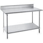 Advance Tabco SKG-245 24" x 60" 16 Gauge Super Saver Stainless Steel Commercial Work Table with Undershelf and 5" Backsplash