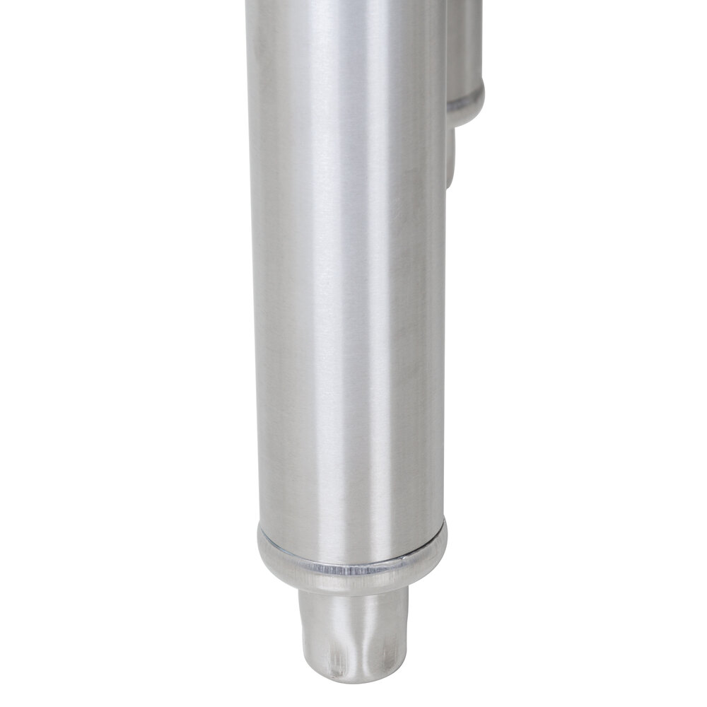 Mounted on 4 strong, 1 5/8" galvanized steel legs, this unit will be sure to remain upright and secure. For superior balance and stability, the legs feature 3" gussets that provide more durability than the standard 2" gussets found on many other tables. In addition, the 1" adjustable bullet feet resist corrosion and allow you to level your table on uneven floors for stability and peace of mind.
