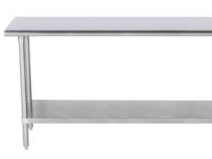 This work table's top is made of 16 gauge type 430 stainless steel for exceptional longevity, while the undershelf is made of 18 gauge stainless steel for long-lasting, dependable service life. Plus, the top boasts a weight capacity of approximately 360 lb.