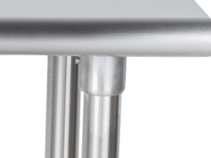 This work table's top is made of 16 gauge type 430 stainless steel for exceptional longevity, while the undershelf is made of 18 gauge stainless steel for long-lasting, dependable service life. Plus, the top boasts a weight capacity of approximately 390 lb.