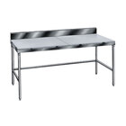 This table's 6" backsplash helps to contain spills and keeps items from falling behind the table, allowing you to place the unit flush against a wall without worry. It also features an undershelf, allowing you to keep tools and ingredients close at hand to streamline your workflow. 16 gauge stainless steel legs and matching bullet feet to provide this table with a stable foundation.