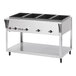 This Advance Tabco electric food table features four sealed wells that keep your food products at proper temperatures so you can adhere to HACCP food temperature guidelines. It's designed to hold food pans (sold separately) full of pasta, meat, or side dishes. Plus, the indicator lights and control knobs are recessed to help prevent clogging and breakage from spilled food and dropped pans. It requires a 120V electrical connection.