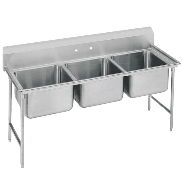 Advance Tabco T9-3-54 Regaline Three Compartment Stainless Steel Commercial Sink - 62" Long, 16" x 20" x 12" Compartments