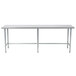 As part of the Advance Tabco Super Saver Series, this TAG-248 24" x 96" stainless steel, open base commercial work table offers the durability of strong, yet affordable, 16 gauge type 430 stainless steel. Its smooth, satin-finished design features rolled front and rear edges, with square sides to keep your staff safe when moving throughout your facility.