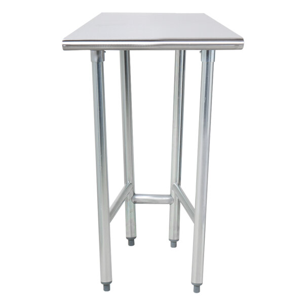 As part of the Advance Tabco Super Saver Series, this TAG-302 30" x 24" stainless steel, open base commercial work table offers the durability of strong, yet affordable, 16 gauge type 430 stainless steel. Its smooth, satin-finished design features rolled front and rear edges, with square sides to keep your staff safe when moving throughout your facility.
