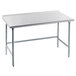 To ensure maximum stability, each open base work table offers 1 5/8" diameter tubular galvanized steel legs with matching leg braces. Each table also includes 1" adjustable plastic bullet feet. This Advance Tabco work table's top is able to support up to 630 lb. of uniformly distributed weight.