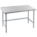 This open base work table offers 1 5/8" diameter tubular galvanized steel legs with matching leg braces. For added stability, each table also includes 1" adjustable plastic bullet feet. This Advance Tabco work table's top is able to support up to 468 lb. of uniformly distributed weight.