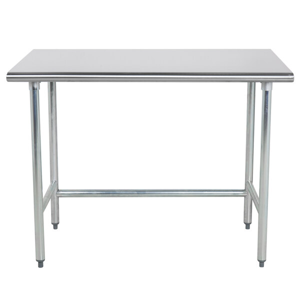 Not quite as sturdy as a table with shelf underneath, but I love having the open space to store ingredient bins. My only complaint is that the cross bar is so low that if you want to put large casters on and keep the table the same height, you cannot, because where you would need to cut the legs off is where the bar comes through the post. WEBstaurant store was misleading by selling the casters as an add on.