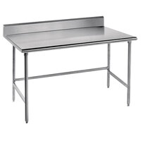 As part of the Advance Tabco Standard Series, this TKMS-367 36" x 84" stainless steel work table combines the strength and durability of strong, 16 gauge type 304 stainless steel with the convenience of an open base style. Each commercial work table features a 1 5/8" sanitary rolled rim front edge with square sides, as well as a 5" backsplash with a 1" return on the rear side.