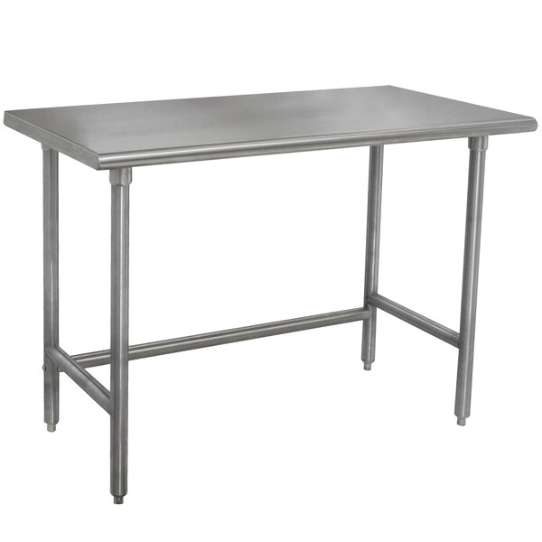 Prepare food and a variety of other essential kitchen tasks with the Advance Tabco TMSLAG-303-X professional stainless steel work table! This work table features an all stainless steel construction for long-lasting durability, and all welded cross-bracing ensures the unit will remain sturdy during use. The whole table is mounted on stainless steel legs with bullet feet for the best in support.