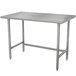 This Advance Tabco TSLAG-304 30" x 48" 16-gauge 430 stainless steel economy work table is an economical option for your commercial food prep area! It's perfect for completing all kinds of daily tasks, from chopping up vegetables to kneading dough, pressing hamburger patties, and boxing up baked goods. The table is able to support approximately 400 lb. of uniformly distributed weight, and it's also sound-deadened to help keep loud noises from disturbing your customers. It features easy-to-clean, rolled front and rear edges, and the sides of the table are squared off for flush placement against walls or other tables.