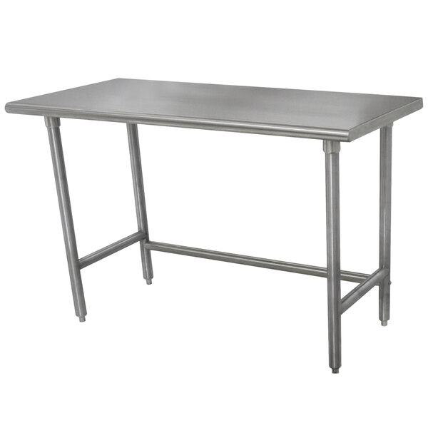This Advance Tabco TSLAG-306 30" x 72" 16-gauge 430 stainless steel economy work table is an economical option for your commercial food prep area! It's perfect for completing all kinds of daily tasks, from chopping up vegetables to kneading dough, pressing hamburger patties, and boxing up baked goods. The table is able to support approximately 420 lb. of uniformly distributed weight, and it's also sound-deadened to help keep loud noises from disturbing your customers. It features easy-to-clean, rolled front and rear edges, and the sides of the table are squared off for flush placement against walls or other tables.