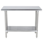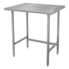 This Advance Tabco TSLAG-363 36" x 36" 16-gauge 430 stainless steel economy work table is an economical option for your commercial food prep area! It's perfect for completing all kinds of daily tasks, from chopping up vegetables to kneading dough, pressing hamburger patties, and boxing up baked goods. The table is able to support approximately 468 lb. of uniformly distributed weight, and it's also sound-deadened to help keep loud noises from disturbing your customers. It features easy-to-clean, rolled front and rear edges, and the sides of the table are squared off for flush placement against walls or other tables.