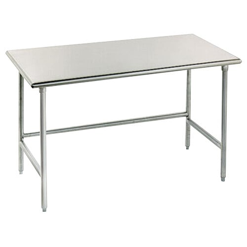 To ensure maximum stability, each open base work table offers 1 5/8" diameter tubular stainless steel legs with matching leg braces. As a testament to the quality of its design, each table also includes 1" adjustable stainless steel bullet feet. This Advance Tabco work table's top is able to support up to 487.5 lb. of uniformly distributed weight.