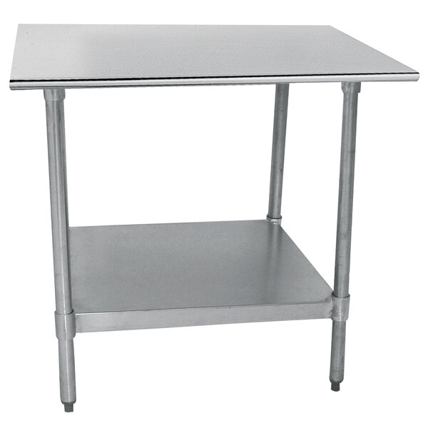This Advance Tabco TT-183 18" x 36" 18 gauge stainless steel work table with galvanized steel undershelf is a durable yet economical solution for any commercial kitchen! It's perfect for completing a variety of tasks including prepping entrees and assembling side dishes and desserts. This work table's durable, 18 gauge type 430 top features rolled front and rear edges, while the sides are squared off for flush placement against walls or other tables. The top also boasts two stud welded hat channels on its underside for added reinforcement and to maintain a level work surface. Plus, it's easy to clean and sound-deadened to help keep loud noises from disturbing your customers.