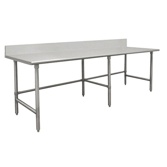 Advance Tabco TVKG-2410 24" x 120" 14 Gauge Open Base Stainless Steel Commercial Work Table with 10" Backsplash